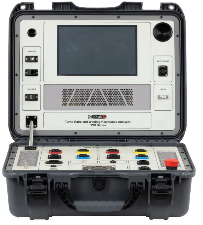 DV Power’s TWR-B series instruments are three-phase, fully automatic test devices specially designed for winding resistance, on-load tap changer DVtest (DRM), demagnetization, turns ratio, phase shift, and excitation current measurements on transformers. It can also perform winding resistance measurement on any inductive object, such as rotating machines (motors and generators). The resistance measurement can also be performed on resistive test objects.