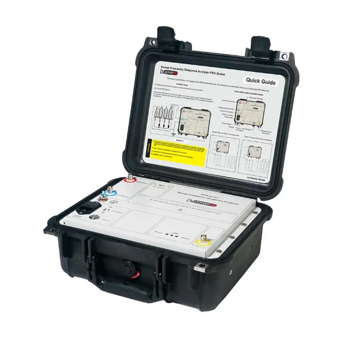 Instrument for sweep frequency response analysis to detect mechanical deformation of transformer windings following transport, through-fault events, or suspected damage.